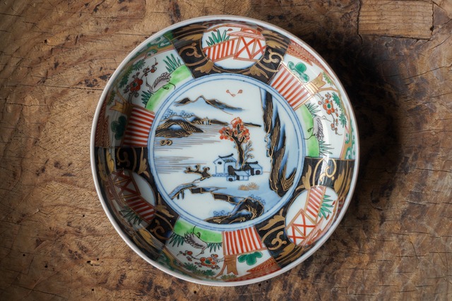 色絵風景図浅鉢 np00262 size Φ21cm H6.5cm 深みのある艶やかな藍に、赤や緑が鮮やかに映えます。 側面を彩る宝尽くし文様が明るさを添え、楽しげな気配を漂わせます。 状態 絵や金彩が剥がれている箇所や、ふりもんがある箇所がございます。 骨董品のため小傷がございます。ご了承下さい。 その他、詳細は画像をご確認の上、 懸念点はお気軽にお問い合わせ下さい。 ----- 当店は骨董を扱う中古食器ショップのため、 製造時/経年による傷や風合いの変化がございます。 際立つダメージは記載しておりますが、 古物へのご理解をお願い致します。 店舗にて現物のご確認も可能です。 また色や質感は お使いのモニターやブラウザによって、 実際とは異なって見える場合がございます。 *オンライン掲載の全ての商品は業務販売可能です。 *飲食店、小売業者様へはご購入金額に応じた割引がございます。詳細はお問合せください。