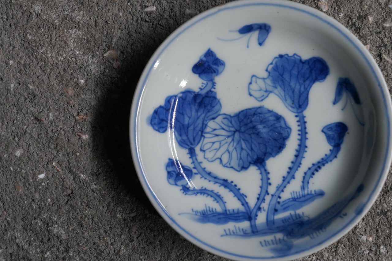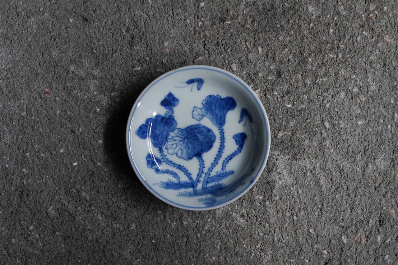 染付蓮に蝶小皿