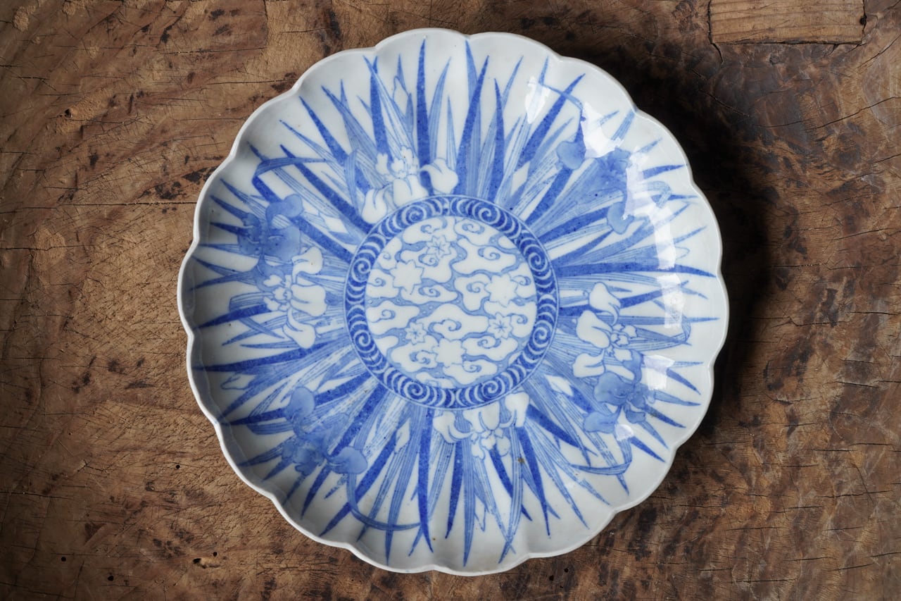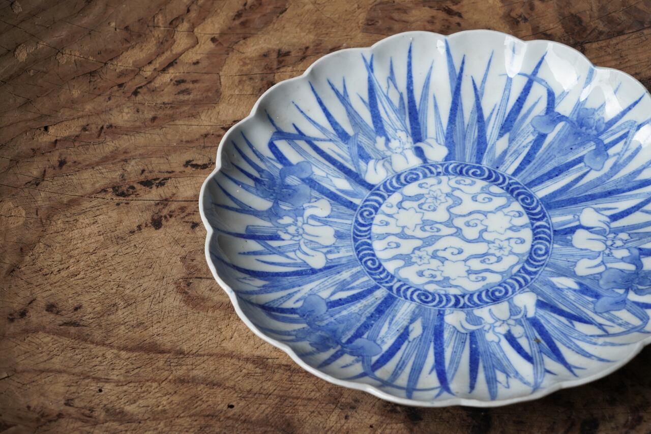 印判菖蒲図輪花皿