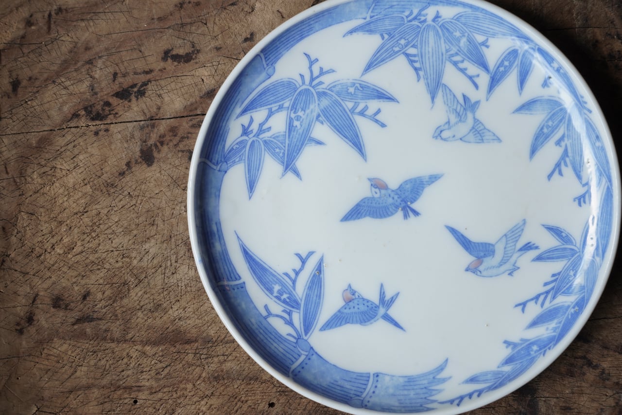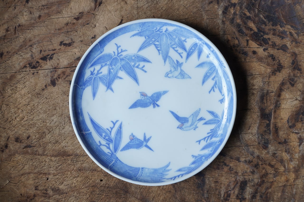 竹に雀図五寸皿 np007300