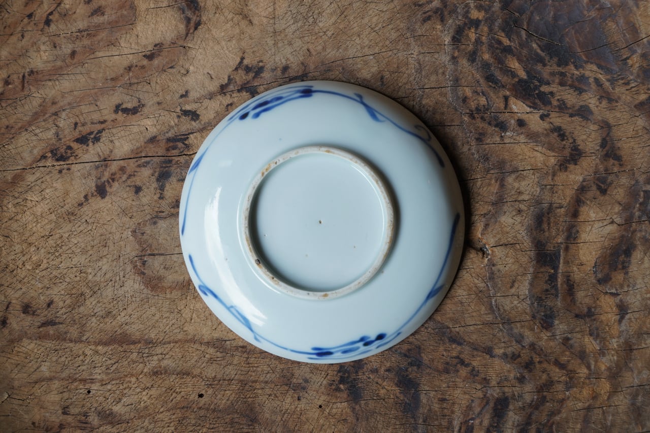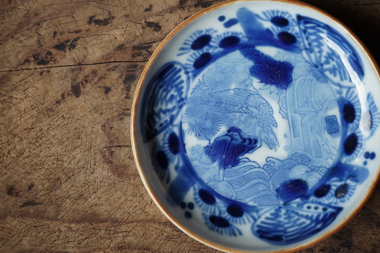 陰刻染付滝に鷲図小皿