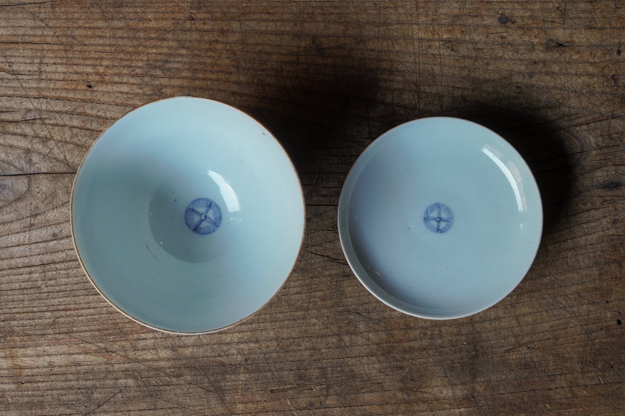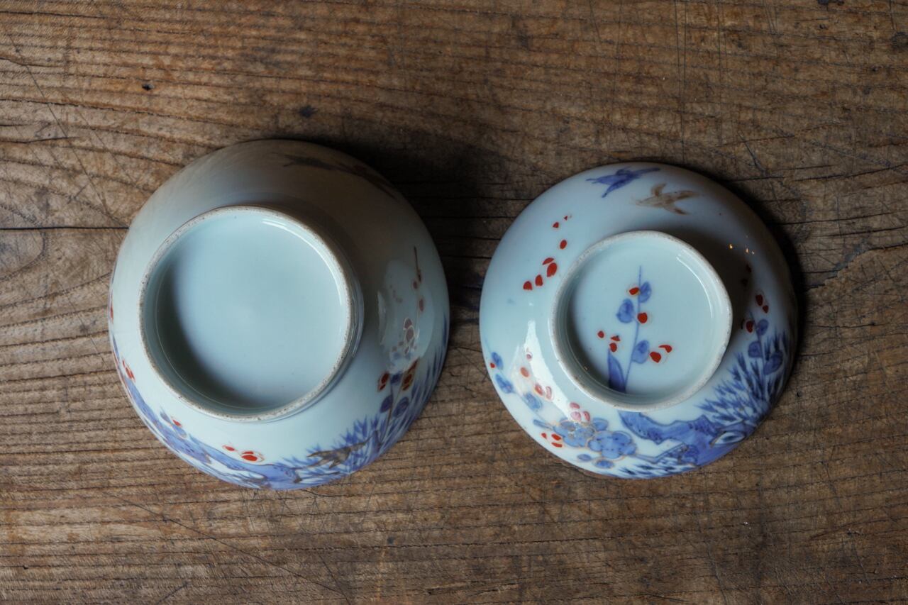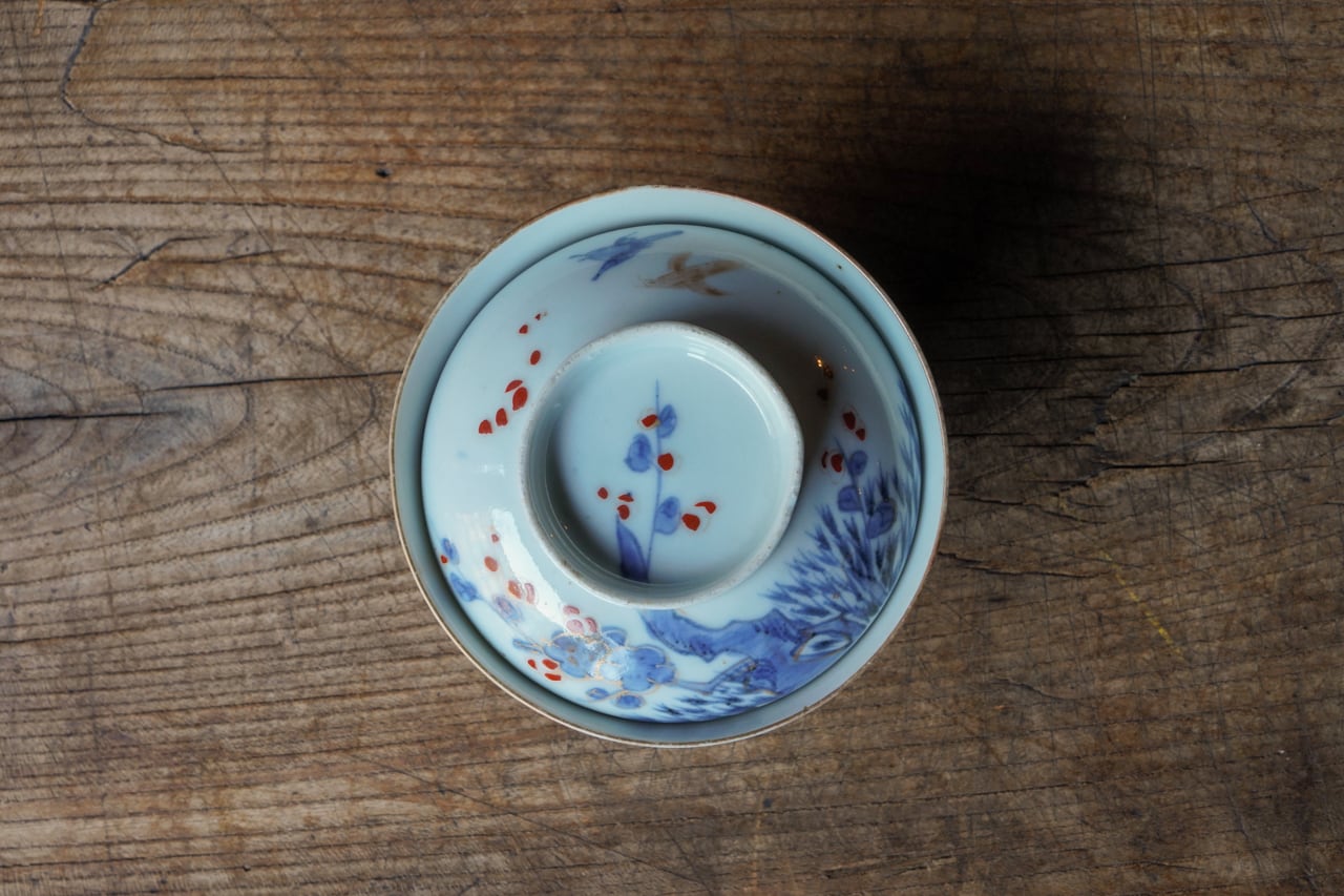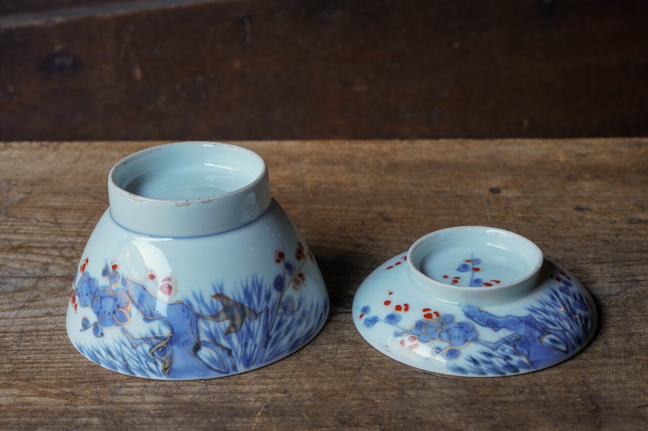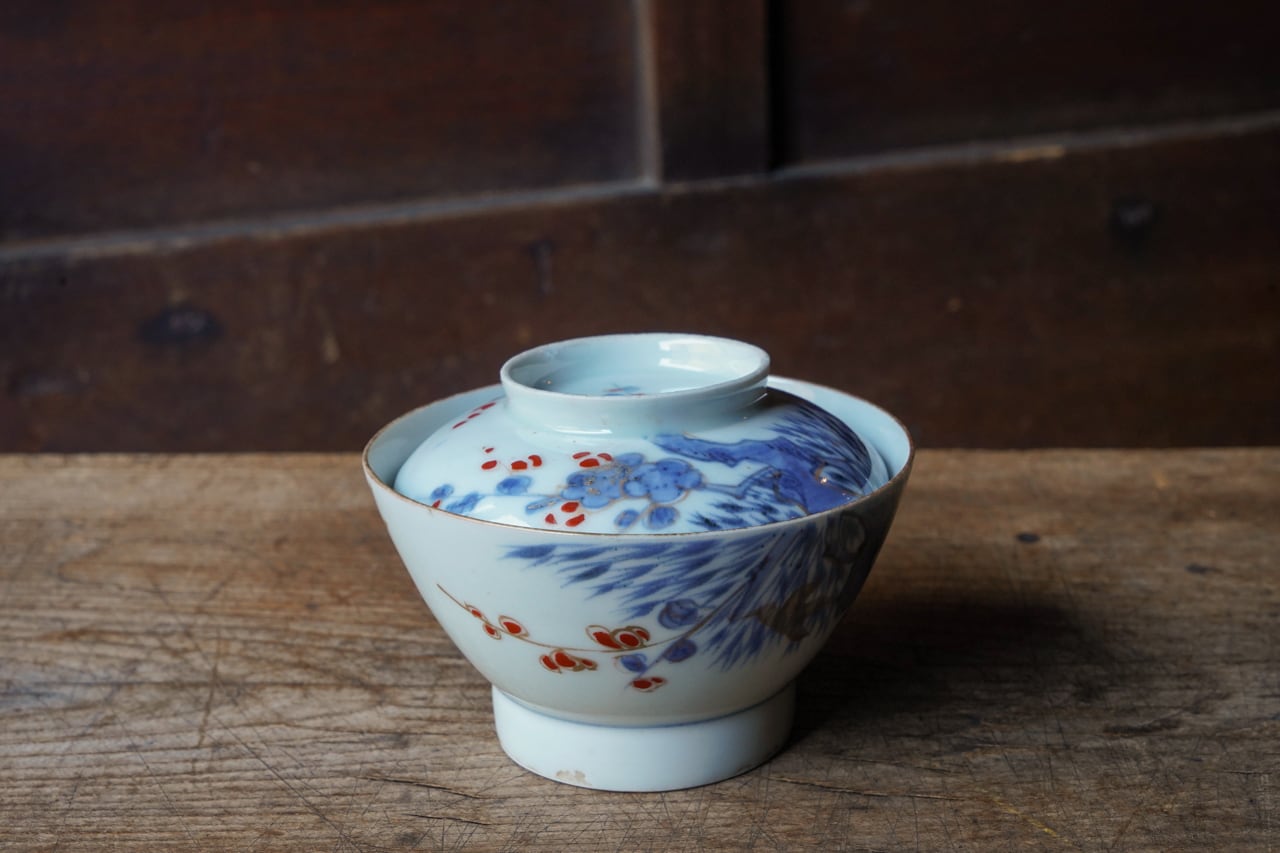 染付の淡い藍の中に、赤い梅がぽっと映えます。