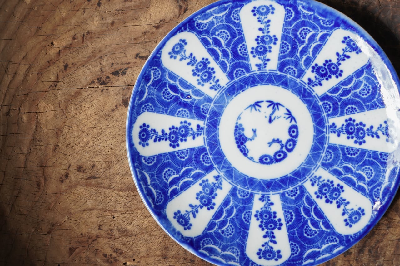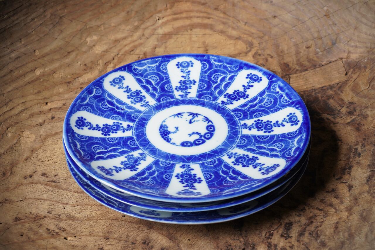 ぐるぐると渦を巻くように全体を埋め尽くす松葉文様が印象的な一枚。