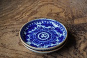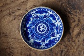 ぐるりと縁を囲む瓔珞紋と藍の濃淡が、お料理をいっそう引き立てます。