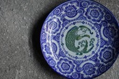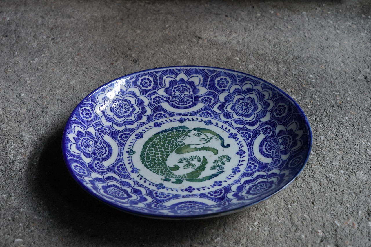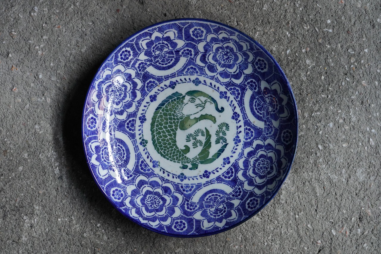 その周囲を巡る唐花模様が鯉をいっそう引き立て、器全体に華やかさを添えています。