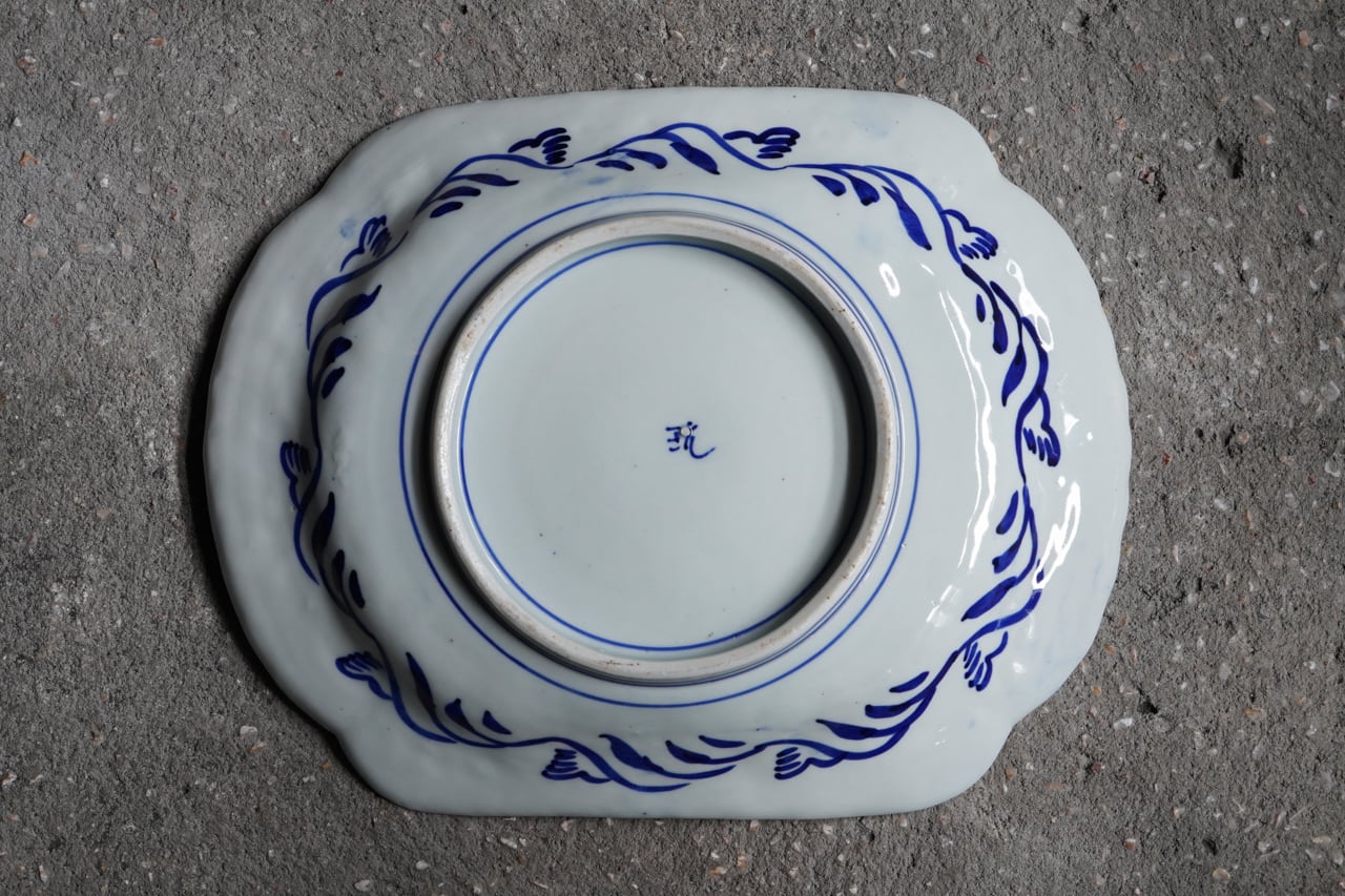 線描牡丹木瓜大皿 np008049