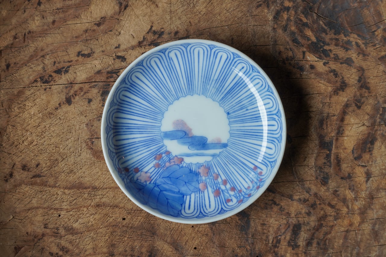桐に菊流水図五寸皿