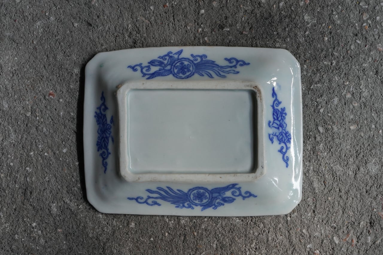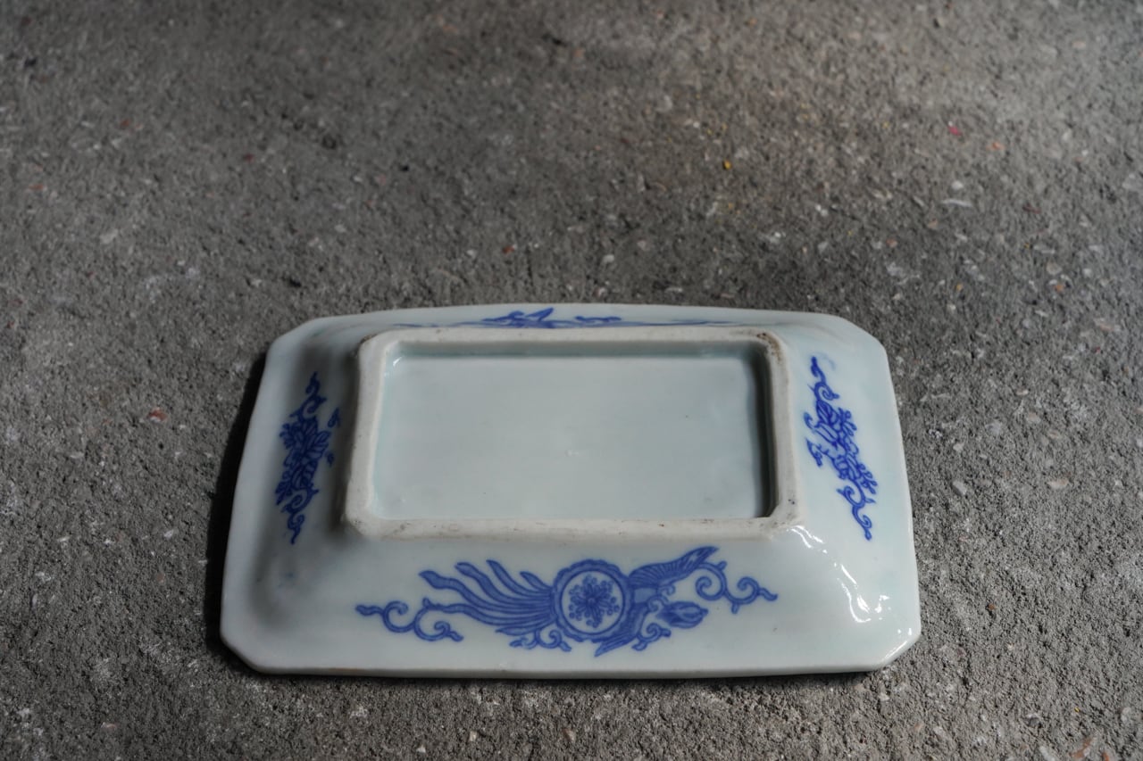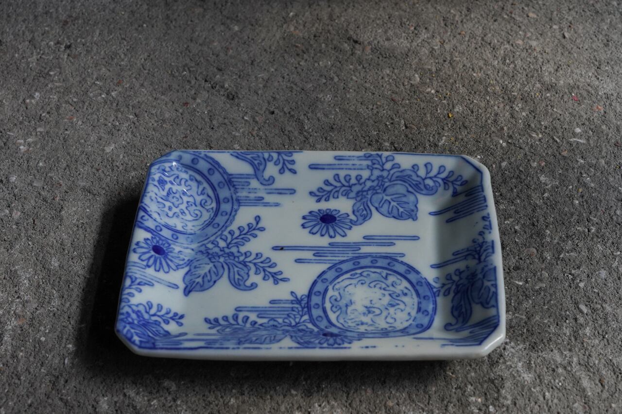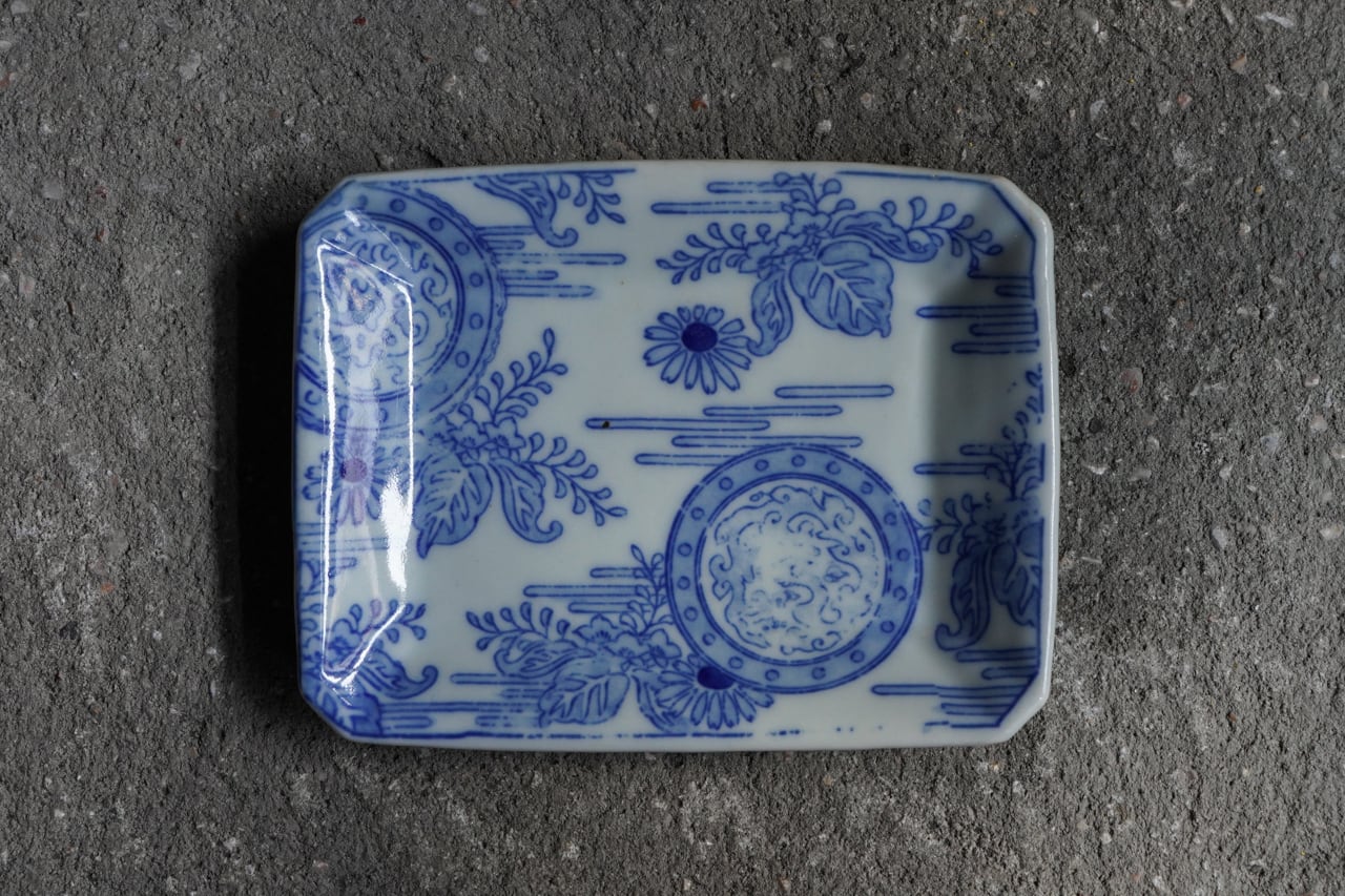 菊に桐図隅切長角皿
