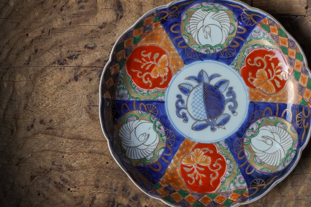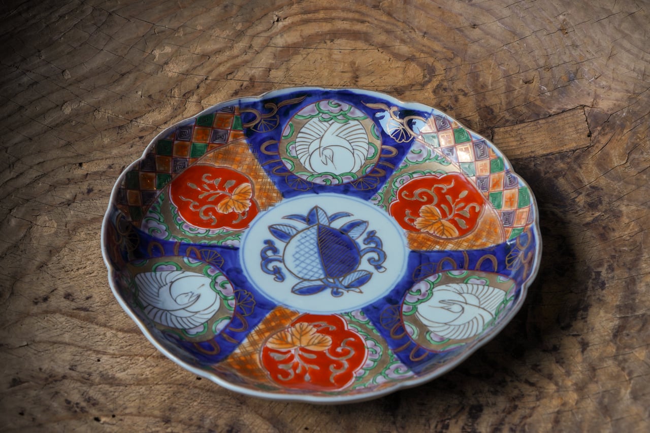 染錦丸鶴八寸皿 np008148