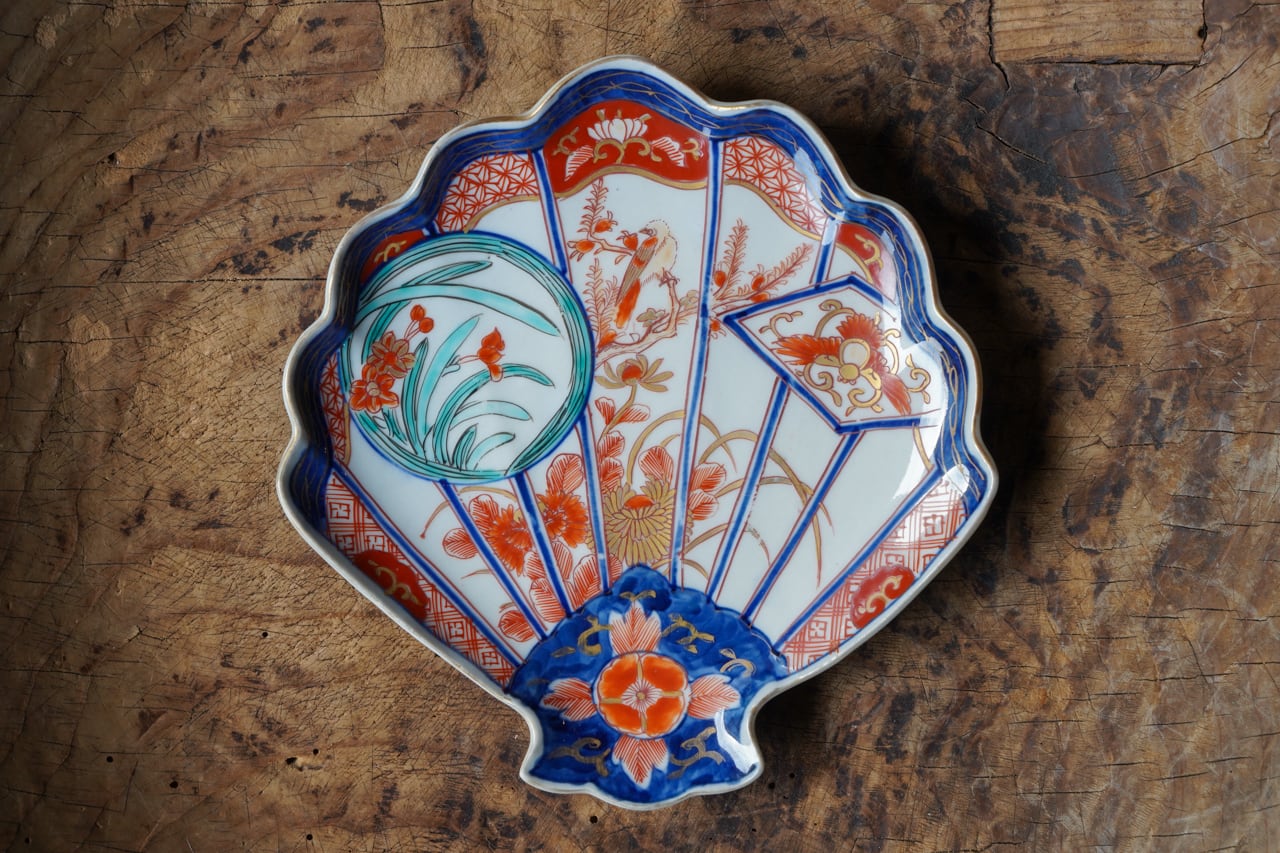 四君子瑞鳥貝形皿