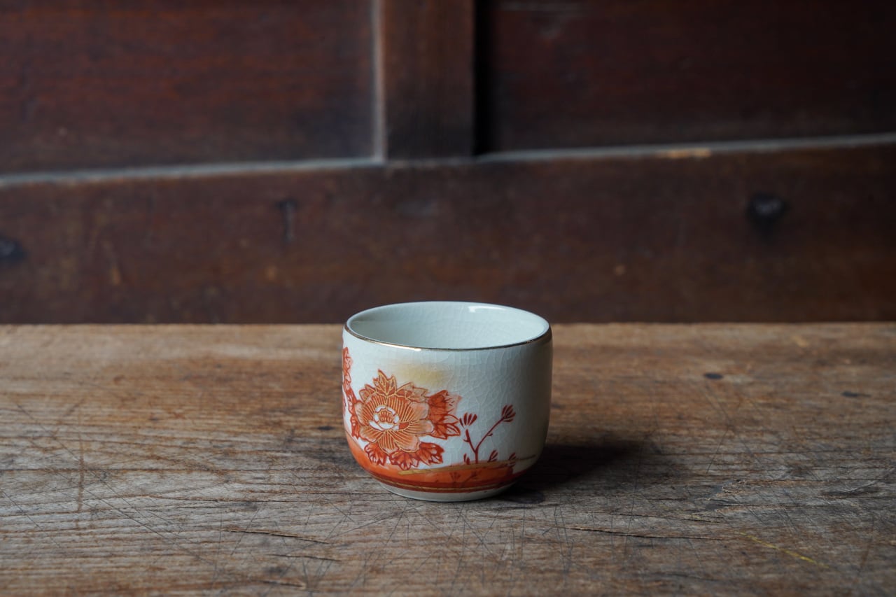 赤絵九谷牡丹図ぐい呑み