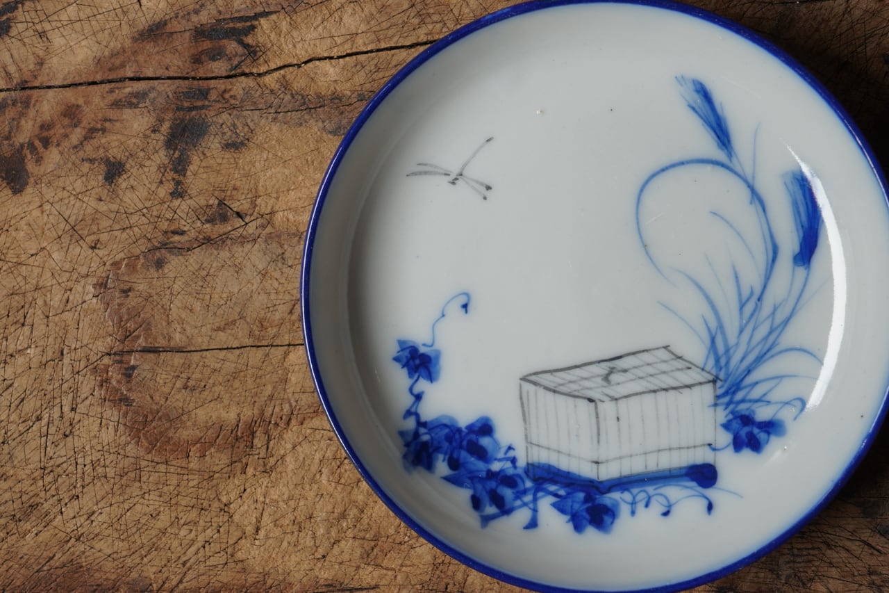 虫籠蜻蛉図小皿
