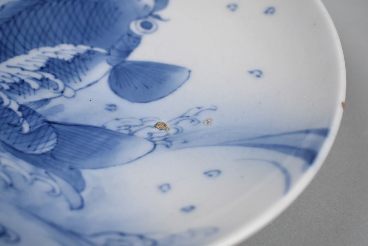 染付鯉図高台皿