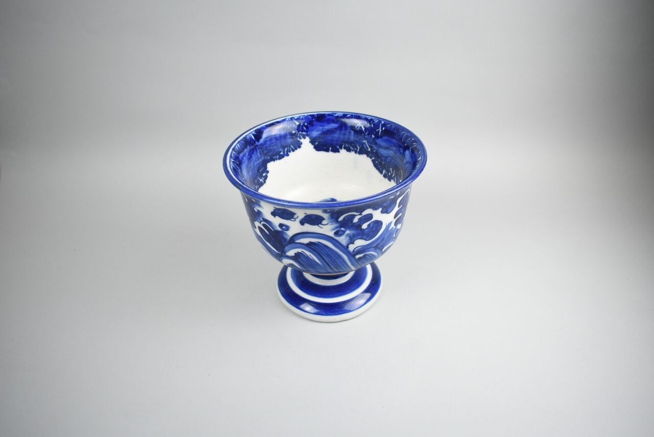 荒波の中、人気の千鳥が胴の部分に描かれています。見込の部分には唐子、何をしているのかわかりませんが楽しそうな表情です。