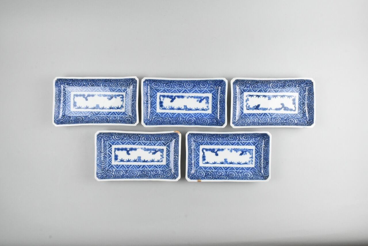 不規則に自由に描かれた蛸唐草と小ぶりなサイズ感が特徴の長方皿です。