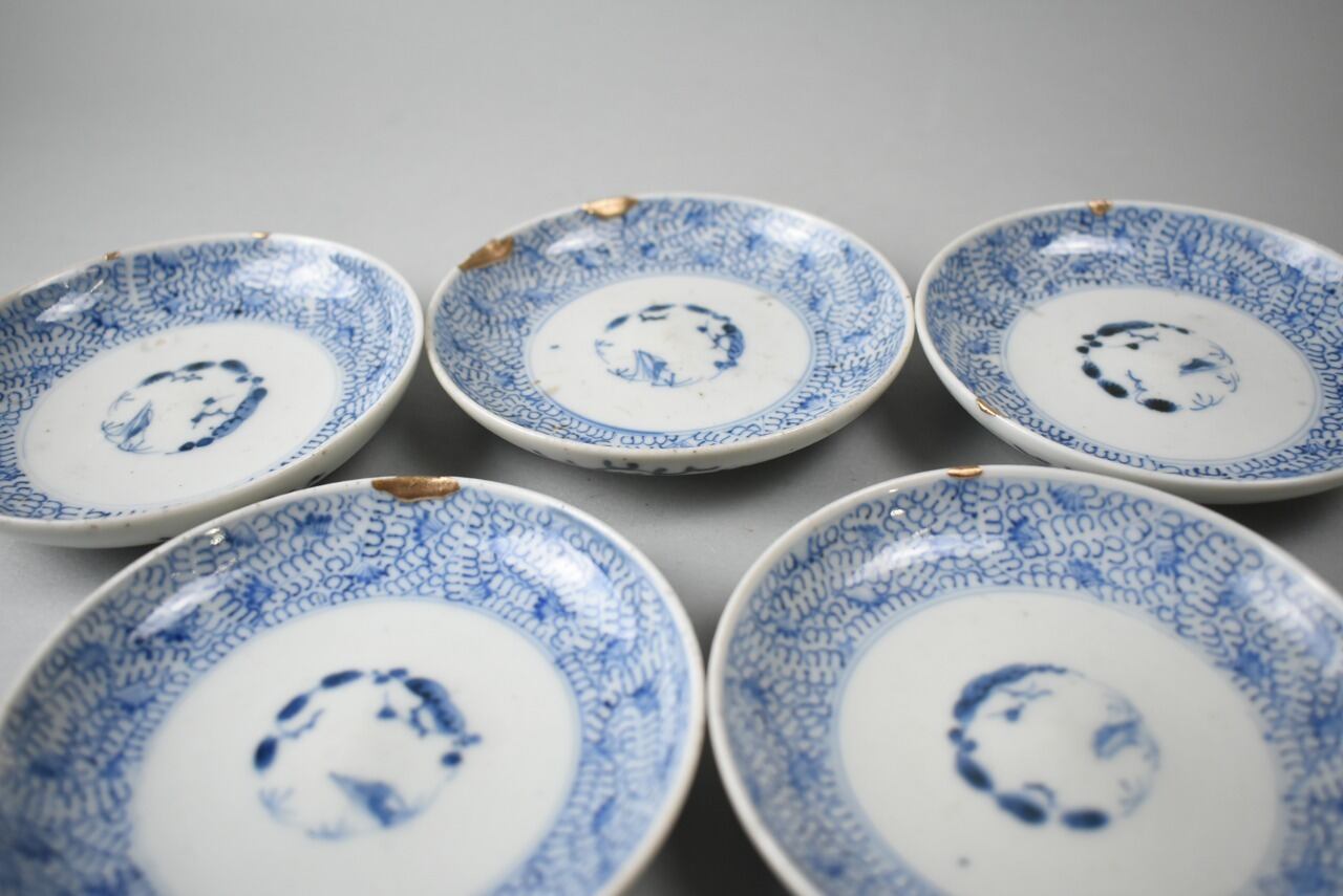 使用感若干あり。全体写真の2枚目、5客を撮影している画像は金継ぎが施しているお皿です。画像載せてます。