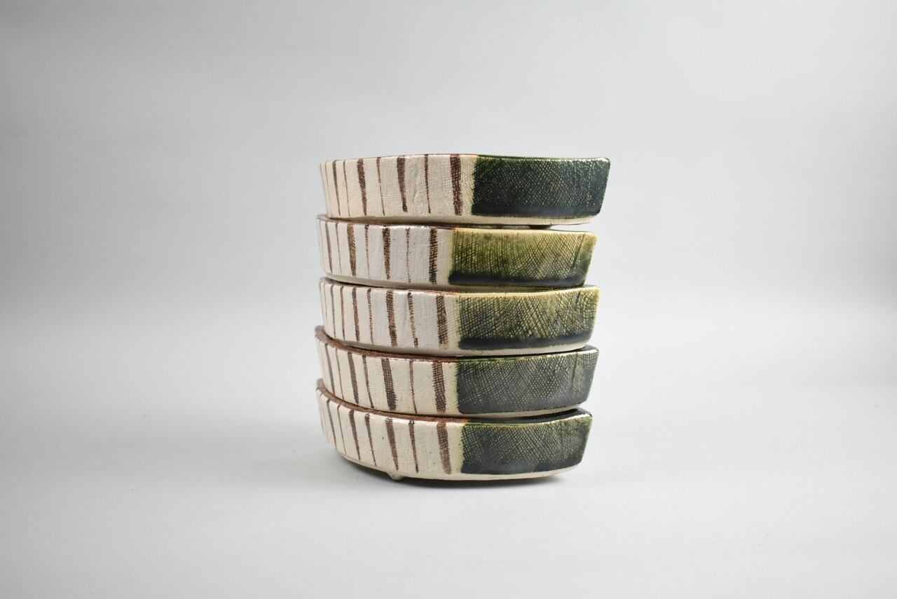 扇の持ち手部分が肉抜きされておりちょくちょくこだわりを感じます。見込み部分の絵付けもシンプルで気取ってなく良いです。刺身皿とかにも良さそうですね。