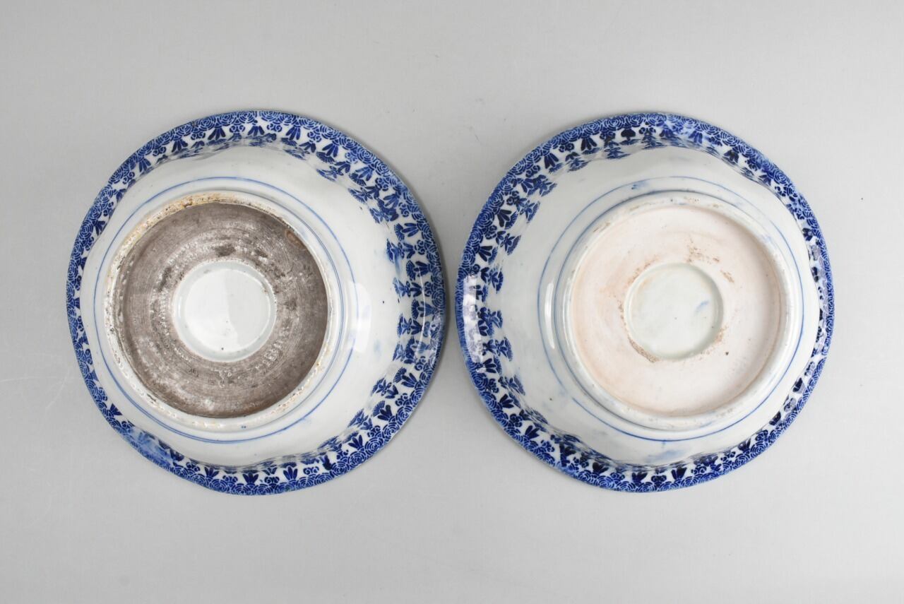 個人的に好みなブルーとグリーンのカラーパターンの印判の鉢です。印判手としての独特のパターンなのか、染付けでのこのパターンは見たことがありません。