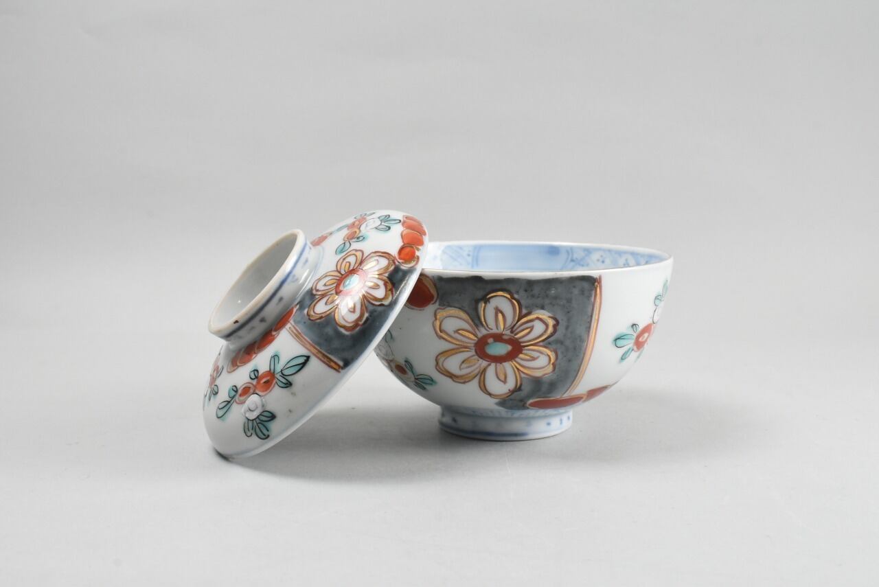 少し控えめな色絵の蓋茶碗。