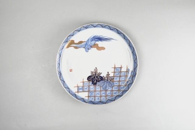 年々数が少なくなっている人気の8寸皿、口縁がくっと立ち上がっているのが特徴です。汁っ気の多いお料理も安心です。クリーム系のパスタなど、洋食にも使えそうです。絵付けもしっかり描かれていて高級感があります。