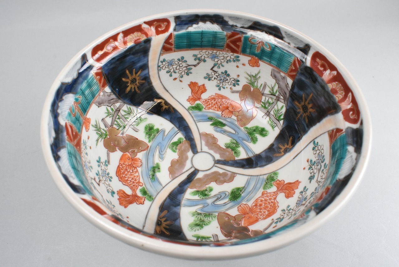 色絵鯉図捻り文盃洗