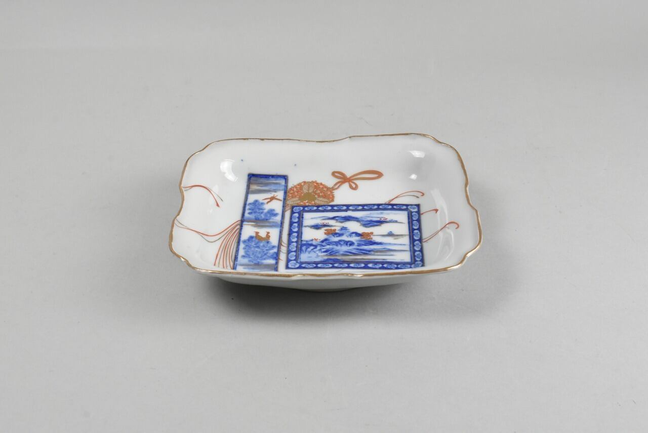 色絵鳥図風景四方皿 np003765