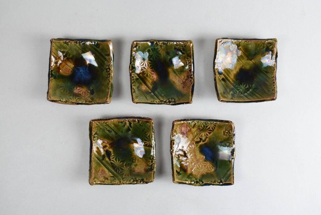 釉薬が流れやすい織部の特徴を活かしています。見込みに向かって、濃く、碧く溜まっていてカッコいいです。