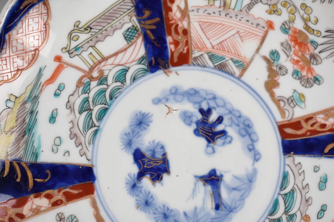 白抜の窓には船。見込みには染付で環状松竹梅が大きく描かれています。