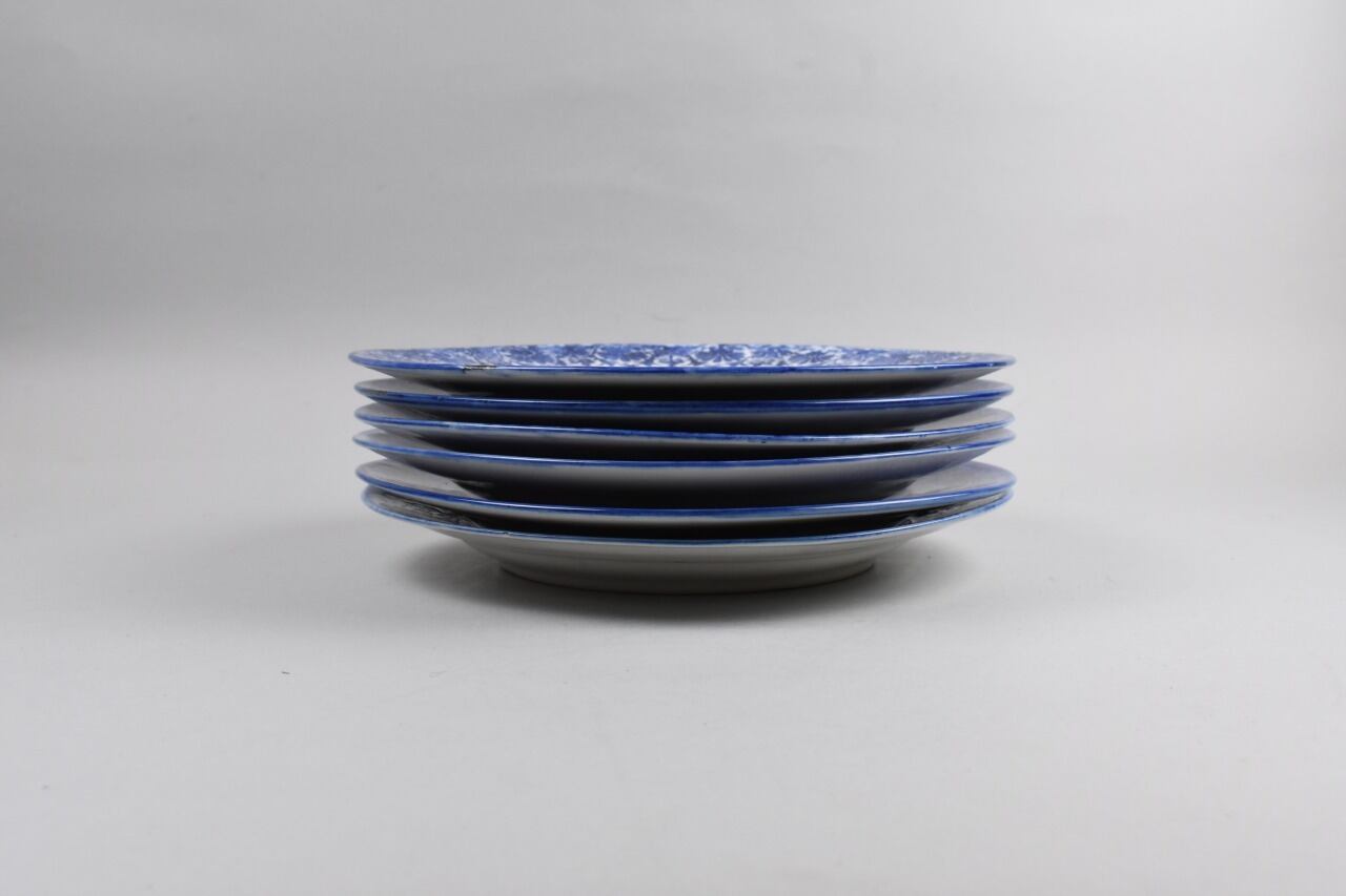 海外の影響を受けたデザインでしょうか、ヨーロッパのケーキ皿のような華やかな花の模様が描かれています。肌の質感もよく、触り心地もつるっとしていてよく、白磁に藍色もしっかりのっていて綺麗です。