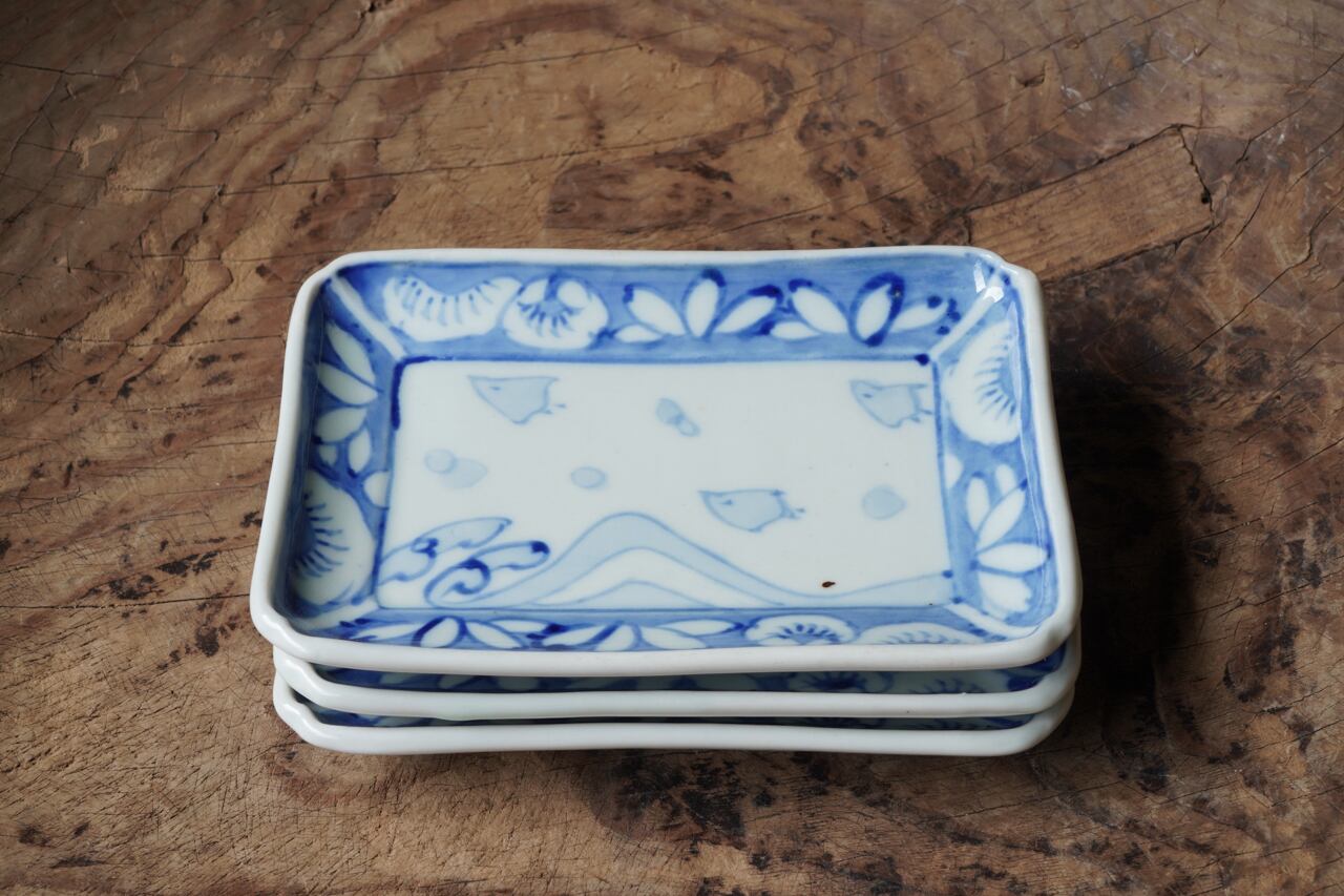 染付波千鳥長方皿