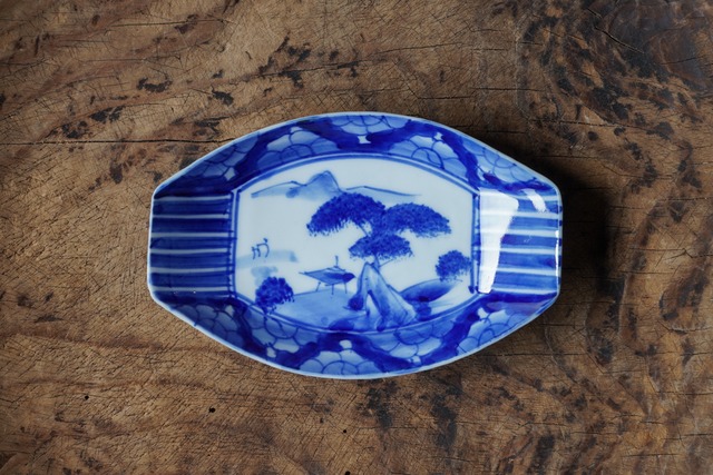 山水舟形皿 np009019 size W16.7cm D10.8cm H3.3cm やさしいタッチで描かれた山水図から、穏やかな雰囲気が感じられます。 ふわりとした牡丹の花が、可愛らしさを添えています。 刺身やおつまみを盛るのにぴったりな器です。 状態 ふりもんがある箇所がございます。 骨董品のため小傷がございます。ご了承下さい。 その他、詳細は画像をご確認の上、 懸念点はお気軽にお問い合わせ下さい。 ----- 当店は骨董を扱う中古食器ショップのため、 製造時/経年による傷や風合いの変化がございます。 際立つダメージは記載しておりますが、 古物へのご理解をお願い致します。 店舗にて現物のご確認も可能です。 また色や質感は お使いのモニターやブラウザによって、 実際とは異なって見える場合がございます。 *オンライン掲載の全ての商品は業務販売可能です。 *飲食店、小売業者様へはご購入金額に応じた割引がございます。詳細はお問合せください。